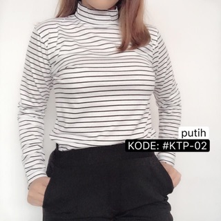 Kaos wanita dengan model kerah yang panjang sampai leher dan lengan panjang.